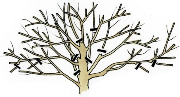 - יבול טוב של דובדבנים או דובדבנים מתוקים תלוי ישירות בצפיפות הכתר שלו;